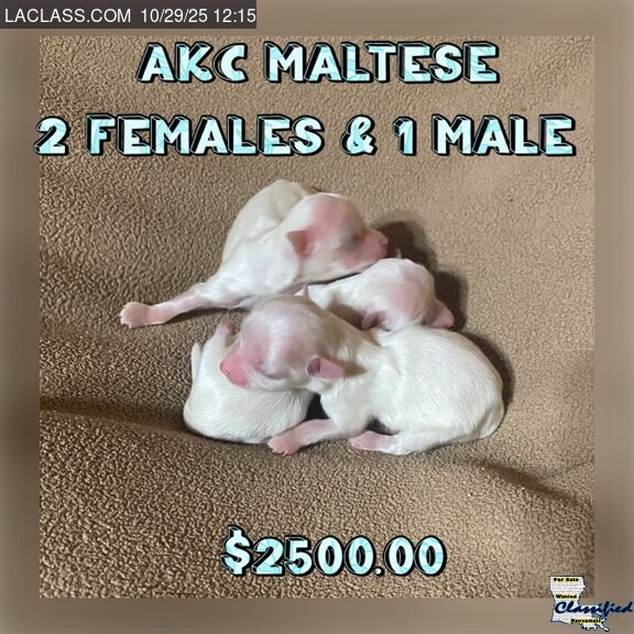 I have some Maltese and yorkie and maltpoo more info give me a call for pictures or videos my number 225 503 5202 | |||