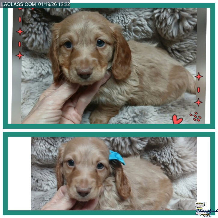 Doxie-poo black and tan, silver dapples, and pie female puppies available. Mom is 7 pound mini Dachshund dad is 5.5 toy poodle. $500. Text for more info. | |||