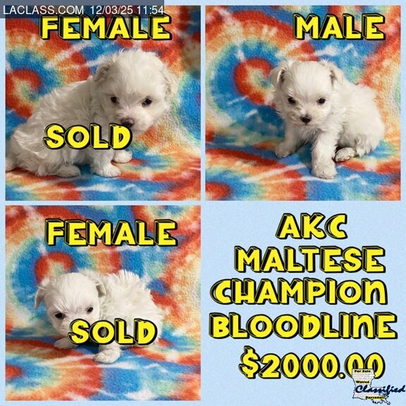 I have some Maltese and yorkie and maltpoo more info give me a call for pictures or videos my number 225 503 5202 | |||
